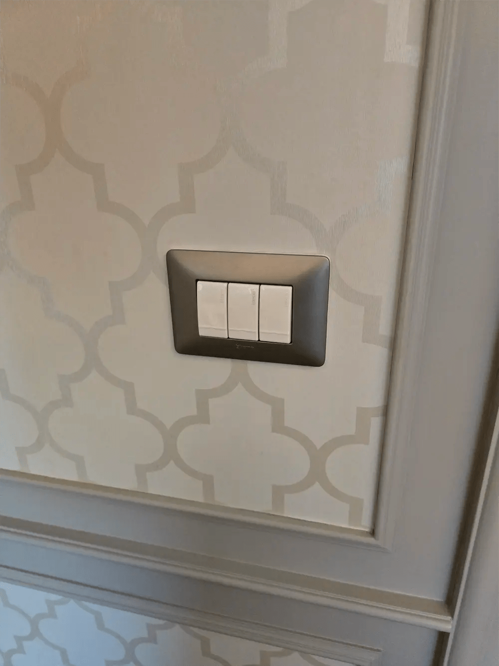 For this project, we installed luxury silver switch plates with white buttons and outlets. The combination of silver and white not only added a modern, upscale appearance but also improved the visibility of switches for easier use. These elegant upgrades elevated the home’s design while aligning with the sophisticated tastes of the homeowner.